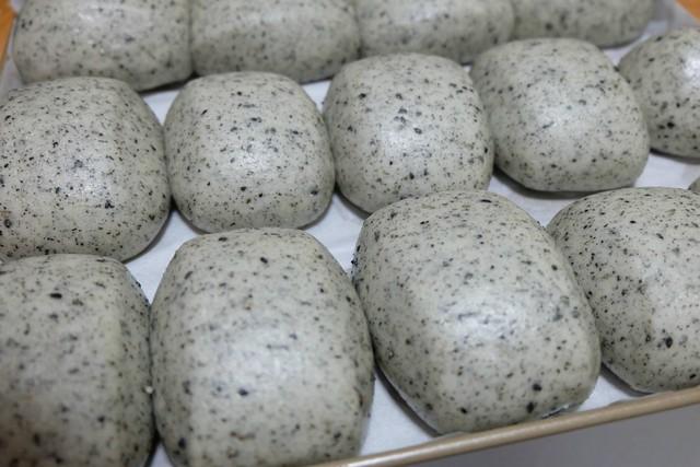 熟黑芝麻50克,豬油(可換玉米油)15克,白糖30克,水180克,酵母4克,面粉350克