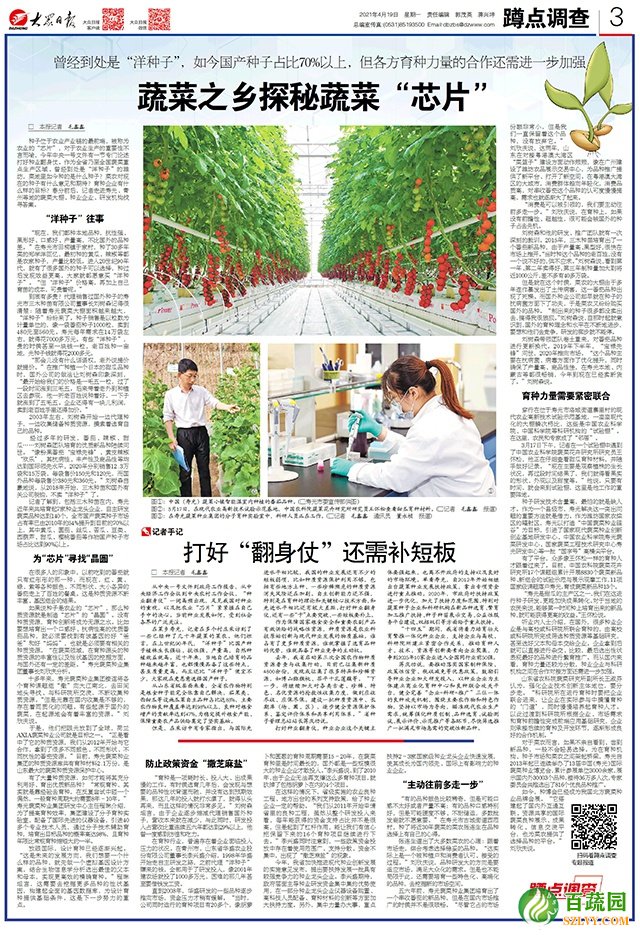 記者了解到,包括三木種苗在內(nèi),壽光近年來共培育起7家種業(yè)龍頭企業(yè),自主研發(fā)蔬菜品種達到140個,全市國產(chǎn)蔬菜種子市場占有率已由2010年的54%提升到目前的70%以上,其中黃瓜、圓茄、絲瓜、苦瓜、豆類、西葫蘆、甜瓜、櫻桃番茄等作物國產(chǎn)種子市場占比達到90%以上。